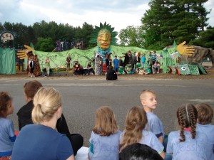 (a legendary puppetry troupe) to build enormous puppets and end up with an outdoor production involving 330 students, 40 staff, and watched by over 700 family and community members. This is true. The pictures on this site are a testament to that.