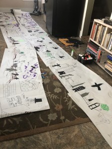 The last few weeks we have been creating a Crankie show to depict the story of our school mascot, the Raven. As Sandglass Theatre says “crankies are an art form that accompanies songs and stories with illustrated scrolls that are hand-cranked within small wooden theaters.”. Crankies have even been used for news over the year.